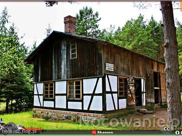 🏳️..Kaszubski Park Etnograficzny🏞️ im.Teodory i Izydora Gulgowskich - Wdzydze Kiszewskie. 🚩..... warsztat kołodziejski z Mirachowa w j. kaszub. Mirochòwò ✒️..został ufundowany przez Szczepana Okroja w 1927 r., a wybudowany przez cieślę Gustawa Czaję. Budynek posiada konstrukcję szkieletową, w części warsztatowej z glinianym murem wypełniającym, w pozostałej części - oszalowany deskami. Posiada oryginalne wyposażenie. Budownictwo Kaszub środkowych. 🖊️..na budynku warsztatu widnieje tablica z napisem:„PUNKT USŁUGOWY / KOŁODZIEJSKO-STOLARSKI / AUGUSTYN OKROJ ” i w czarnej obwódce dodatkowo informacja „MISTRZ STOLARSKI” .. zdj.1
