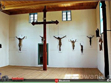 🏁..Kaszubski Park Etnograficzny🏞️ im.Teodory i Izydora Gulgowskich - Wdzydze Kiszewskie. 🏳️....Kościół⛪ z Bożegopola Wielkiego 🚩...🖊️.. dawne krzyże✝️ przydrożne oraz kapliczki🛐 Kaszub Północnych.Poza najwyższym krzyżem widoczne wejście do zakrystii... zdj. 1
