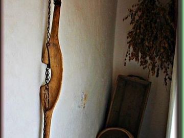 ⚐..Kaszubski Park Etnograficzny im.Teodory i Izydora Gulgowskich - Wdzydze Kiszewskie. ⚑..chałupa robotnicza z miejscowości Nakla w j. kaszub. Nôklô z XVIII w. ‣ na pierwszym planie-koromysło ✍..Ci, którym wysoki poziom wód gruntowych albo środki finansowe pozwalały wybudować studnię obok chałupy, należeli do wąskiego grona szczęściarzy..... Większość chłopstwa musiała taszczyć wodę ze strumieni, jezior albo studni obsługującej całą wioskę. Służyły im do tego drewniane, ściśnięte metalowymi obręczami (a więc ciężkie same w sobie) wiadra, konwie i putnie. Zakładało się je na specjalne nosidła (pydy, kluki, jarzmo itd.) – wyprofilowaną belkę z łańcuchami zakończonymi hakami... zdj.2