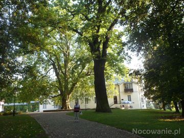 aleją parkową - od bramy i furty głównej - w Zespole Pałacowo - Parkowym, dziś Muzeum Dzieduszyckich,po lewej oranżeria, po prawej rotunda i aleja do kościoła.