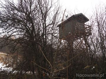 ambona myśliwska - z tarasem widokowym, wyposażona w piecyk ogrzewający pomieszczenie. (Wujskie)