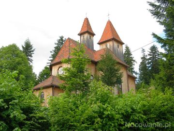 bajkowo ale prawdziwe ! - kościół rzymskokatolicki pw. Krzyża Świętego i Matki Boskiej Królowej Polski - uroczo położony, wzniesiony w 1902r., drewniany kośció (Rozpucie)