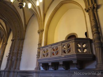 balkon - w pałacowej sali balowej, zwracają uwagę kunsztem wykonania prezencji inne detale architektoniczne.