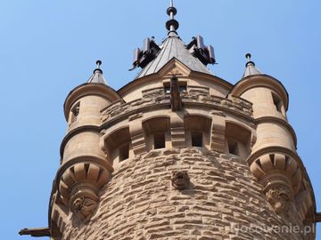 baszta zamkowa - z pietyzmem odrestaurowana, zachwyca kunsztem detali. (Moszna)