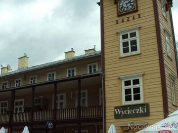 BAZAR - z lat 1876-1880, zbudowany na rzucie poziomym w kształcie zbliżonym do litery H z czworoboczną wieżą zegarową przy narożniku południowo- -zachodnim. Gór (Iwonicz Zdrój)