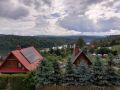 Widok z okna Domku Widok i sam Domek. Jezioro 3 minuty pieszo od posesji. Nad jeziorkiem są rowery wodne, kajaki.
