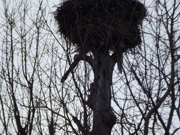 bocianie gniazdo - a miejsce jego założenia jakby przez mieszkańców sugerowane / sprowokowane, no bo o wsparcie konstrukcji zadbano - pewnie "jakiś interes w tym mają - może coś do załatwienia ?" - bo wójt i ksiądz coś o statystykach wspominali...