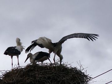 Bociany - gniazdo koło byłej piekarni  (Chomiąża)