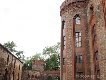 bramy do ogrodów - parku pałacowego, tu też baszta narożna, forteczna, z furtą, była niegdyś częścią kompleksu obronnego.