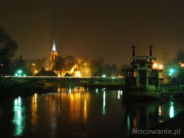 Bulwary Chattelerault nocą z widokiem na kościół św.Stanisława Kostki. (Piła)