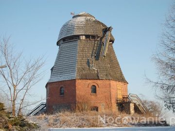 Ceglany, kryty gontem wiatrak typu holender z 1810r