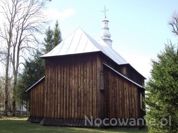 cerkiew, po regulacji granic w 1951r. był tu magazyn a w 1973r. świątynię przejęli wierni obrządku rzymsko-katolickiego. Zdjęcie przedstawia widok od prezbiterium, widoczne symetrycznie dobudowane dwie zakrystie, podmurówkę wokół kryje i zabezpiecza tzw. fartuch.