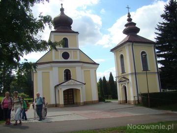 cerkiew pw. św. Jana Złotoustego - a w temacie : 14 IX 407r. zmarł z wyczerpania na miejsce wygnania św. Jan Chryzostom, zwany Złotoustym, bp. Konstantynopola, uznawany za największego kaznodzieję Kościoła Wschodu. Twórca liturgii Eucharystii w cerkwi prawosławnej. W 1568r. Kościół katolicki ogłosił go Doktorem Kościoła. N/z - od 1946r. kościół i dzwonnica - odrestaurowane.