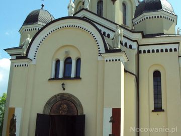 cerkiew pw. Zaśnięcia NMP, wzniesiona w 1888r., bryła świątyni na wzór bizantyjskiego soboru. Po wojnie do dziś użytkowana jako kościół.