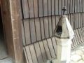 cerkiew zbudowana w tzw. stylu zachodniołemkowskim - a co to oznacza ? - pokrótce : wieżę górującą nad babińcem - miejscem dla kobiet - i dalej proporcjonalnie mniejsze kopuły nad nawą i prezbiterium - tak że całą bryłę świątyni można wpisać w trójkąt prostokątny. - za : "Poznaj swój kraj" nr 8/2014. - n/z widok od strony furty, tj. w parkanie na lewo od bramki.