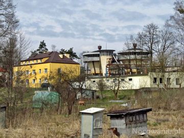 Charakterystyczne stożki zakładu płyt pilśniowych. Biorą udział w zrzutach ścieków przemysłowych do Rolniczej Oczyszczalni Ścieków, umiejscowionej na łąkach prz (Czarna Woda)