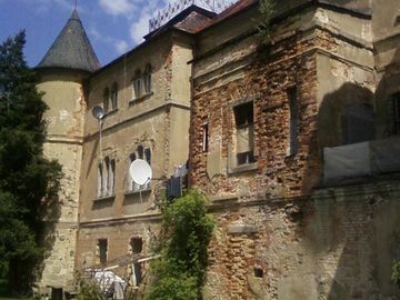 Chociaż pałac trochę się rozpada to swym wyglądem nie odstrasza zwiedzających jak i grilujących (Łomnica)