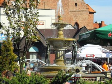 Chwiala wytchnienia w pobliżu uroczej fontanny na Starym Rynku (Chojnice)