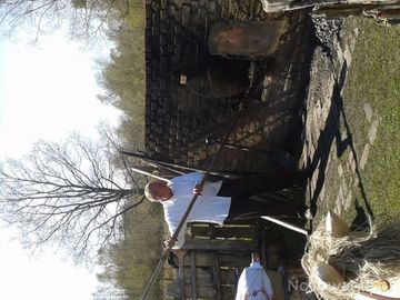 Na zdjęciach jest przedstawione proces wyrobu chleba, oraz wyrób opału (torfu).