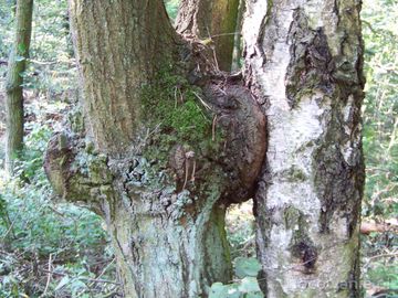 Dąb w symbiozie z brzozą.