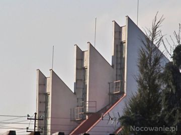 Dach kościoła widziany z posesji przy ulicy Topolowej
