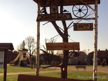 dekoracyjne elementy terenów do rynku przyległych - miłe dla oczu przyjezdnych, mieszkańców i przejezdnych. Folkloru trochę wnoszą, o dążeniach estetycznych świadczą. Przykład "do podkradania, do kopiowania" - oby plagiatów więcej! - radośniej byłoby! A miasteczko całkiem duże - w co i jenerał uwierzył - " bo od św. Jana do św. Michała trza przewędrować" ! ...