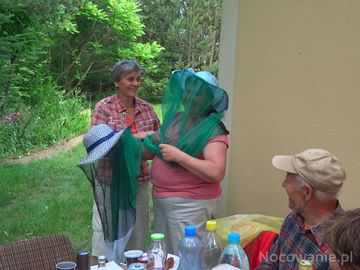 demonstrowany jest pokaz elementów uniformu - prawidłowego, wskazanego uniformu / przyodziewku w pracy bartnika / pszczelarza - a my tą wiedzę "łykamy"... Było (Karlików)