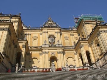 do świątyni prowadzą monumentalne, kamienne schody o trzech ciągach. Wszystkich stopni jest 56, z czego 33 w środkowym ciągu symbolizuje lata życia Jezusa na Zi (Wambierzyce)