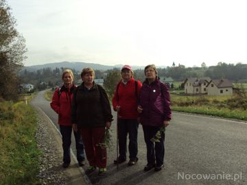 do wsi wchodzimy, po lewej na wzgórzu widoczna wieża cerkiewna a po prawej wieżę kościelną widać. Hen : na wzgórzu /już za Sanem/ "Las Selpy", to przez niego ścieżką urokliwa trasa od cerkwi w m. Międzybrodzie /jest galeria - zapraszam/ na Górę Krzyż i stamtąd wąwozem do Studni Królewskiej - jest tylko "pewien problem" - otóż : chcieć trza !