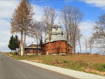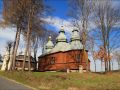 Drewniana greckokatolicka cerkiew parafialna św. Dymitra w Jaworniku Ruskim . Cerkiew zbudowana w 1882 w miejsce starszej cerkwi pod tym samym wezwaniem, istnie (Jawornik Ruski)