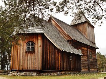 Drewniany kościółek na terenie skansenu (Wdzydze)