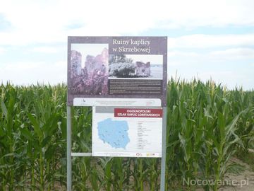 Drogą polną w kierunku ruin kaplicy.  (Skrzebowa)