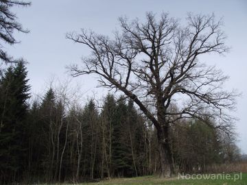 drzewo z szubienicznym konarem - tam łotrów wieszano, przy rozstaju traktów handlowych, strategicznych. Tam też zidentyfikowana skubalnia jastrzębia w pobliżu j (Glinne)