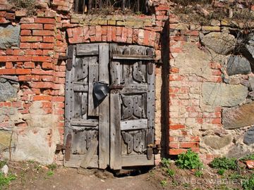 Drzwi,wejscie do dość dobrze zachowanych piwnic straznicy krzyżacej. (Mołtajny)