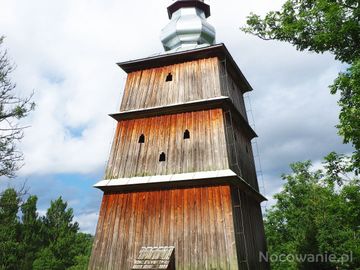 dzwonnica cerkiewna - jest to najwyższy tego typu obiekt w Polsce, w górnych kondygnacjach okienka wycięte w oszalowaniu.