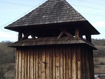 dzwonnica z XIXw., drewniana, konstrukcji słupowo-ramowej, na kamiennej podmurówce, czworoboczna, przykryta namiotowym dachem, pobitym gontem, dach zwieńczony tzw. makowiczką.