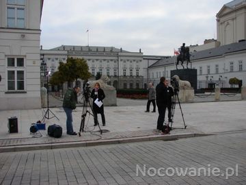 Ekipy telewizyjne przed Pałacem Prezydenckim.