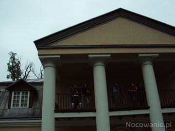 Elewacja frontowa dworu, z portykiem o 2 kondygnacjach, wspartym na 4 kolumnach. Od północy wsparty na 4 filarach balkon. Dwór na rzucie prostokąta, z mieszkalnym poddaszem.