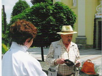 Fasada kościoła pw. św. Mikołaja - fragm. lewej strony. Wspomnienie o Józefie Bukowskim - fundatorze budowy kościoła. Od strony wschodniej, już w nowszych czasach, wykuto wejście pod prezbiterium do małej piwniczki, w której zbudowano mały ołtarzyk i umieszczono tablicę ufundowaną w 1987r. przez parafię na 250 rocznicę zbudowania kościoła.