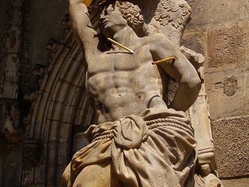 Figura barokowa (jedna z wielu) przy kość. Sanktuarium Matki Bożej (Bolesławiec)