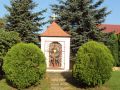 figura św. Bartłomieja w kapliczce przydrożnej, pewnie zabytkowa - odnowiona, zadbana i zabezpieczona. Święty na przegubie lewej ręki ma przewieszoną "skórę człowieczą" - męki Mu zadane polegały na obdarciu Go ze skóry i głowa jego z tą skórą stanowić ma - świadczyć - dowód na piekielne męki, jakim poddawani byli "głoszący Słowo Boże".
