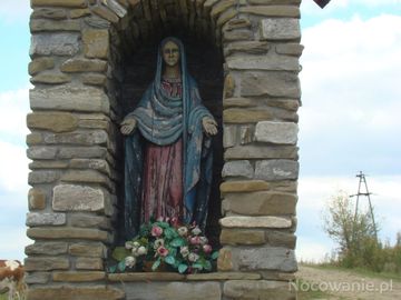 figura św. Tekli - w niebieskiej szacie, czerwonej sukni, w kapliczce przy gościńcu z dworu w Woli Sękowej do Nowotańca - a tam zamek kiedyś był ! zaopatrywany w wodę - już w XVII wieku - wodociągiem ze źródła na zboczu tego wzgórza co ta kapliczka - z terenu zwanego "pod Ciurkiem".