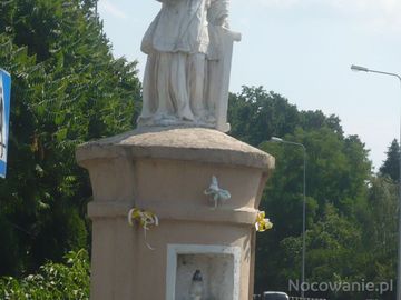 Figura świętego na narożniku przy rondzie. (Gołuchów)
