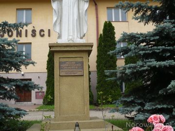 Figurka Matki Bożej przed budynkiem klasztoru. (Sadowie)
