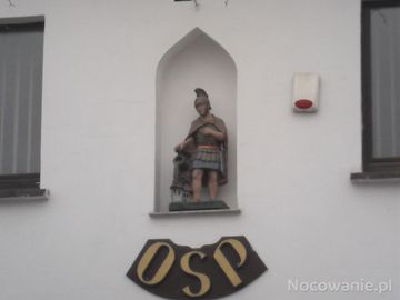 Figurka Św. Floriana na ścianie remizy straży pożarnej