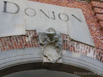 forteczna brama główna - nad arkadą portyku obdarzona przedstawieniem kartusza herbowego.