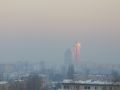 Fot.:Bogdan Misiewicz. Widok z balkonu 9 piętra wieżowca przy ul. Orlicz-Dreszera 12a. W dali wieżowiec Sea Towers (ang. Morskie Wieże).