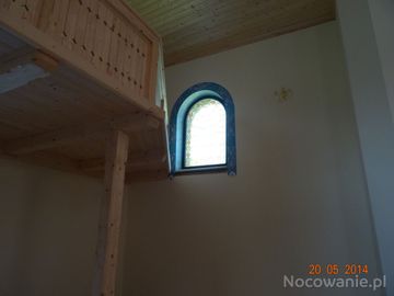 fragment parapetu chóru - wspartego obelkowaniem oraz okno z witrażem wici roślinnej w półzamkniętym koliście otoku, obok kinkiet - dwugniazdowy. Podczas konsekracji nowego kościoła biskup dokonuje wewnątrz murów 12 namaszczeń. Miejsca te oznacza się niewielkimi krzyżykami i mocuje pod nimi jednoramienne lichtarze. Są to tzw. zacheuszki. Symbolizują one 12 apostołów i są zapalane w rocznicę poświęcenia kościoła oraz w inne większe uroczystości. Tej świątyni rekonsekracja była we wrześniu 2013r. po jej gruntownym remoncie.