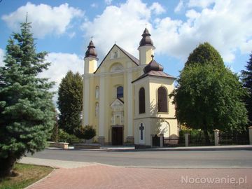 fronton kościoła i dzwonnica no i fragment otoczenia - nowy dywanik asfaltowy, chodniki nowe, czysto i "jakoś tak po pańsku, po miejsku".