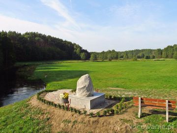 Głaz z tablicą pamiątkową pobytu w tym miejscu Karola Wojtyły w 1956 r.